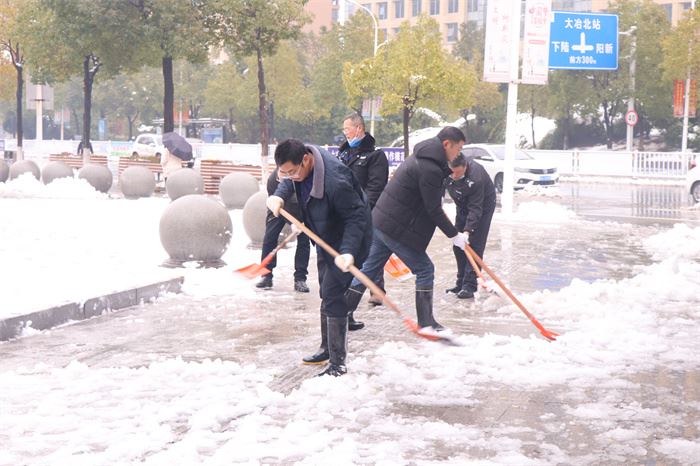 为了保障道路畅通及群众出行安全,一上班,大冶法院迅速组织干警开展扫雪破冰行动。