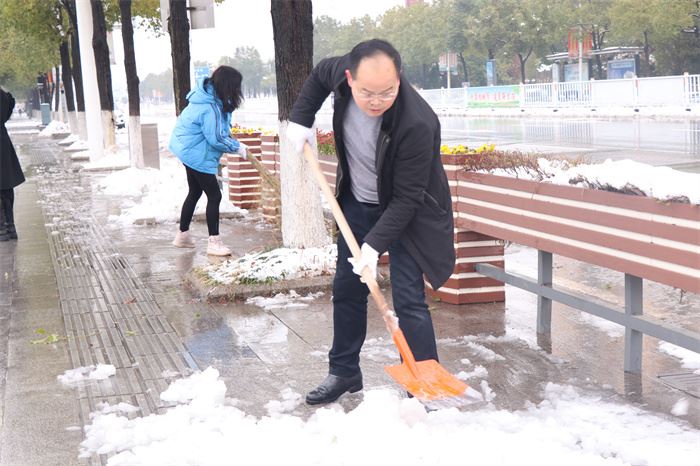 人多力量大,经过5个多小时的努力,主干道路面和院内院外的积雪均被清扫干净。