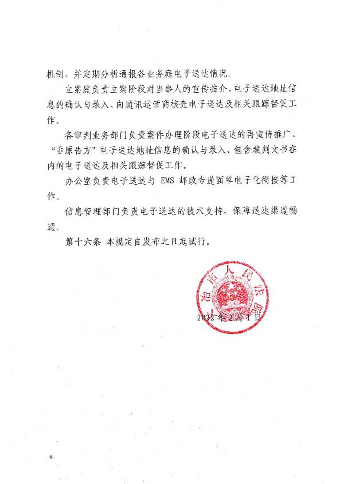 大冶法院关于进一步推广适用电子送达的若干规定 (试行)